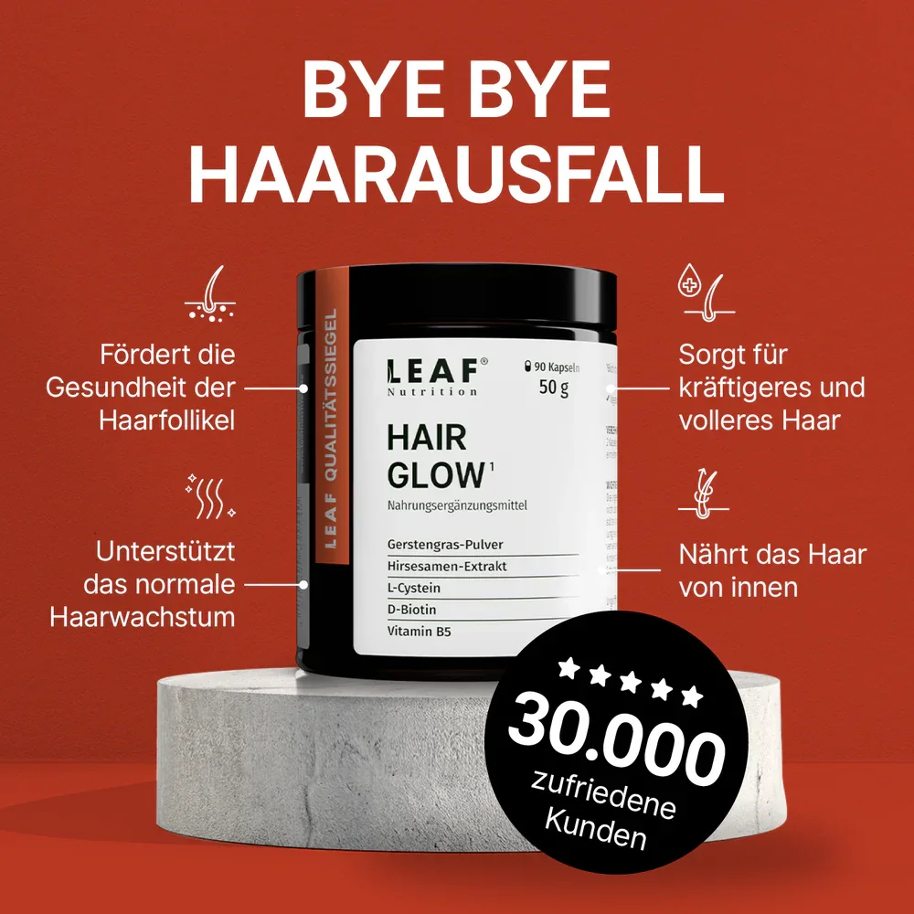 Sichere dir noch heute das effektive „HairGlow“ von Leaf Nutrition für sichtbar volleres und gesünderes Haar in nur wenigen Wochen!