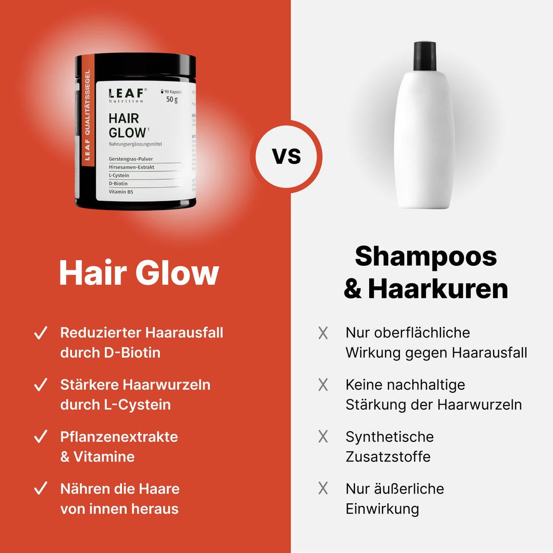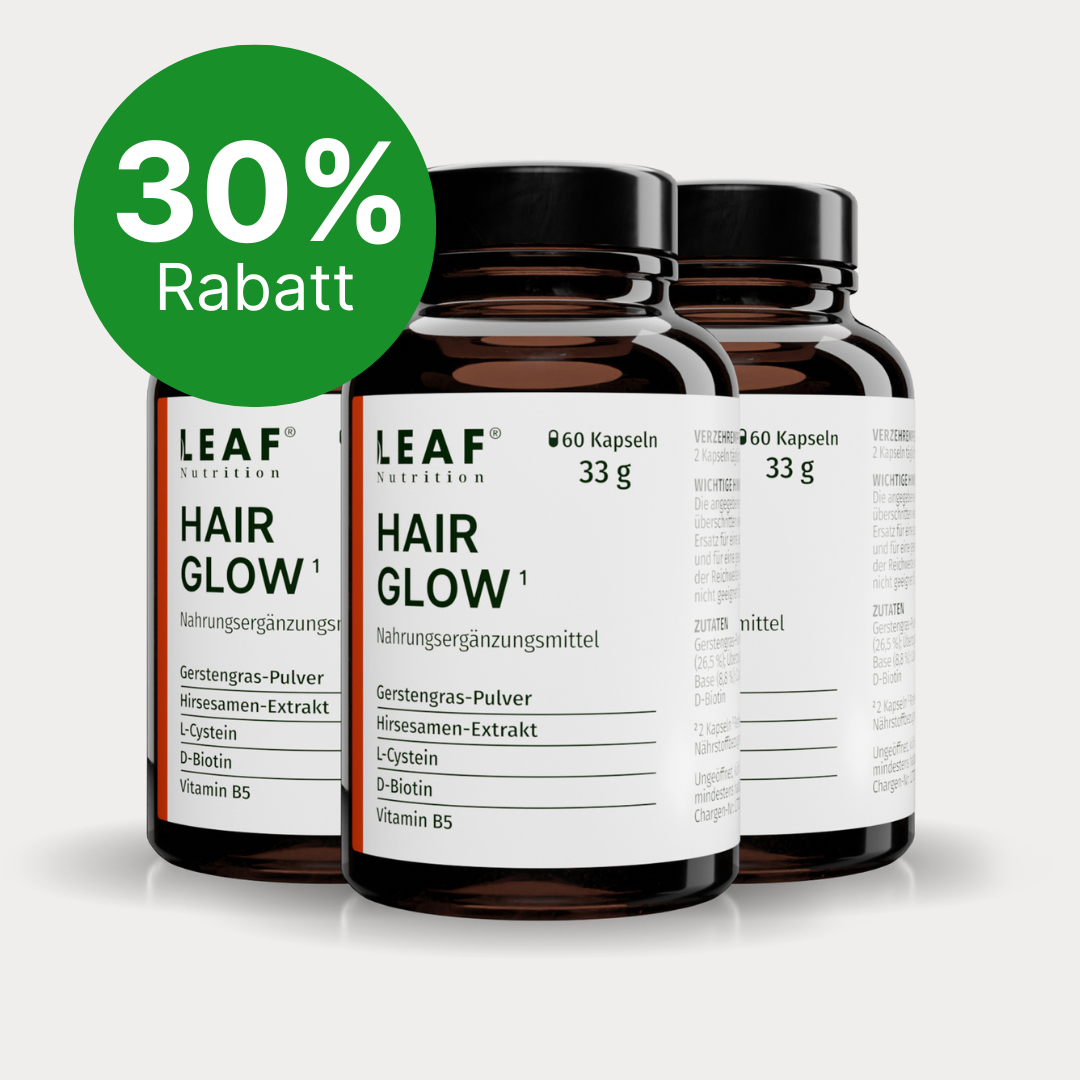 Sichere dir noch heute das effektive „HairGlow“ von Leaf Nutrition für sichtbar volleres und gesünderes Haar in nur wenigen Wochen!