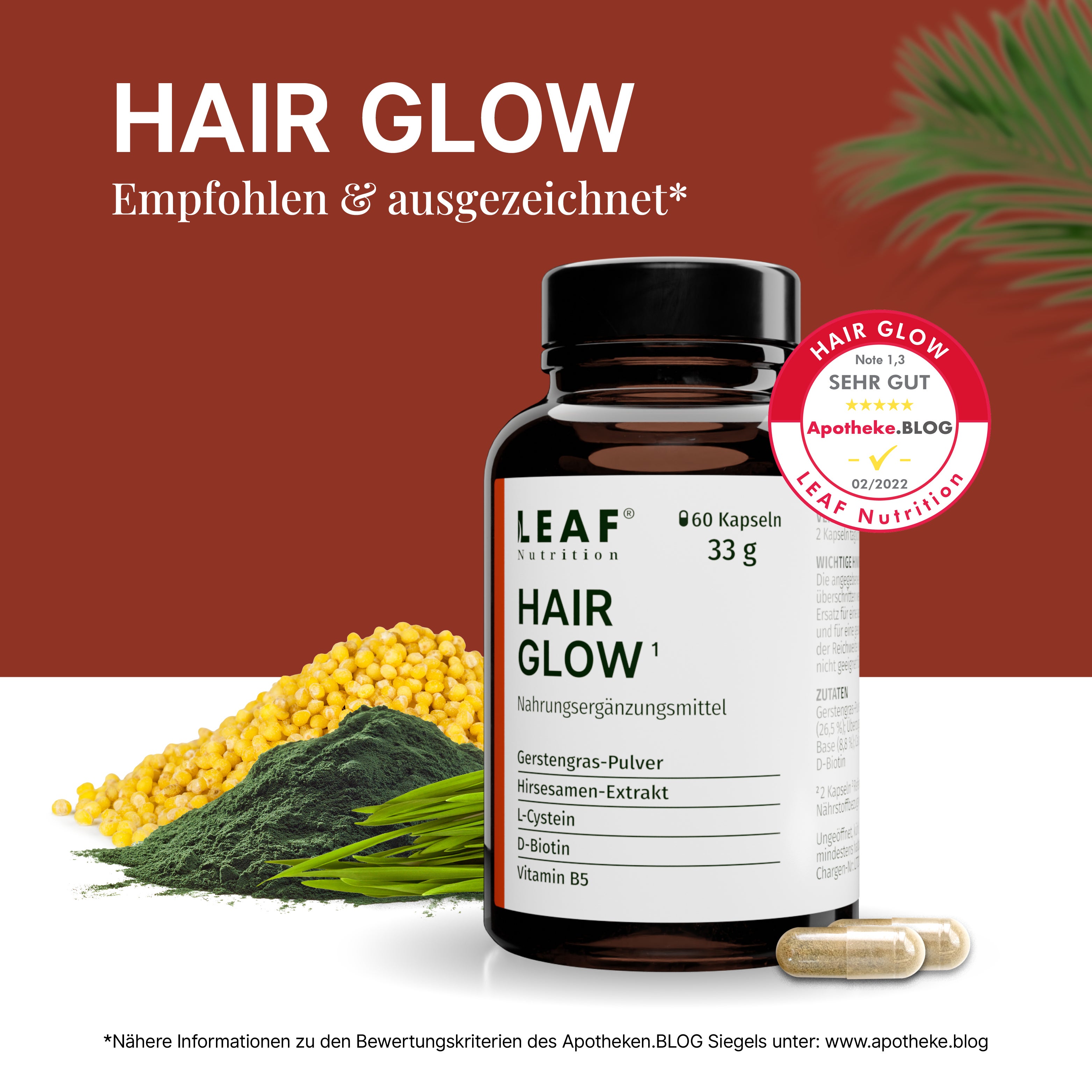Bei Essential Beauty Tips empfehlen wir nur Produkte, die wir selbst lieben und von denen wir überzeugt sind. Deshalb haben wir gemeinsam mit dem Team von „Leaf Nutrition HairGlow“ ein besonderes Angebot für dich ausgehandelt: