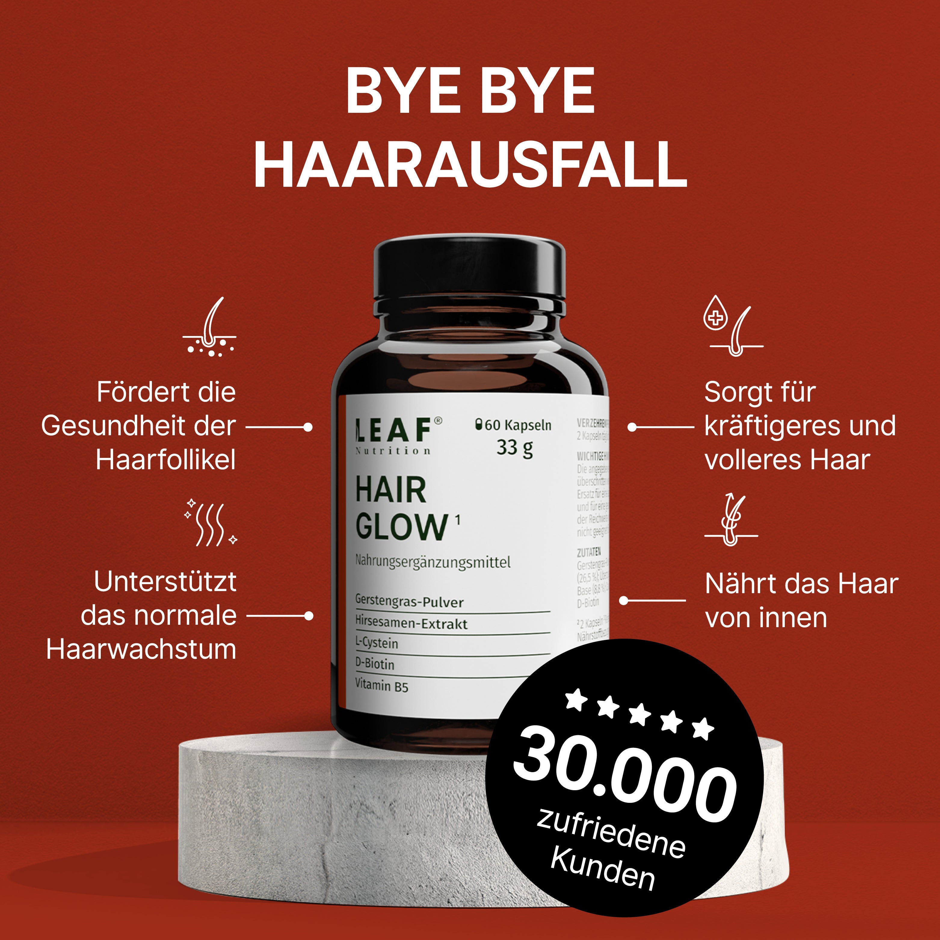 Solltest du wider Erwarten nicht zufrieden sein, kannst du „HairGlow“ innerhalb von 30 Tagen zurückgeben. Sende einfach eine E-Mail an info@leafnutrition.de, und deine Produktinvestition wird dir innerhalb von 1-2 Werktagen zurückerstattet. So kannst du „HairGlow“ ganz ohne Risiko ausprobieren.